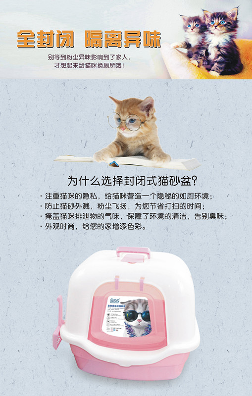 材质:PP尺寸:51*42.5*41CM类型:抽屉全封闭猫砂盆颜色:粉 蓝 咖